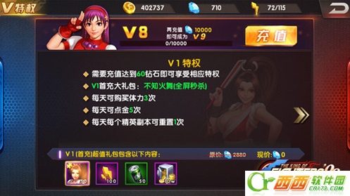 在游戏当中,玩家充值60钻石即可获得V1用户特权。玩家获得V1特权可以享受到V1首充大礼包、每天可购体力3次、每天可点金5次、每天每个精英副本可重置1次等特权。小编从V1用户的特权入手,为大家解析如何更快提升战斗力。