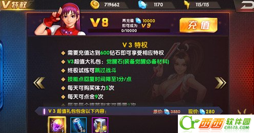 1、V3超值大礼包。在V3超值大礼包中包含觉醒石、经验可乐和金币,玩家可以花费钻石购买。小编认为,这三样物品都将对战斗力的提升起到作用,觉醒石可以对格斗家装备进行觉醒,快速提升战斗力。经验可乐和金币则用户格斗家升级和养成必需品。