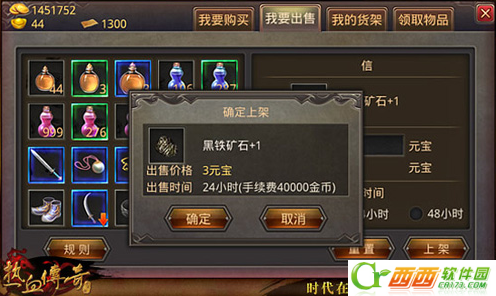 1、选择寄售商品后,点击“上架”按钮就可开始物品寄卖,注意绑定物品不能被寄卖。当寄卖时间结束时,还没有买家购买,那么寄售的物品将退回到“我的物品”中,寄售物品手续费不退。