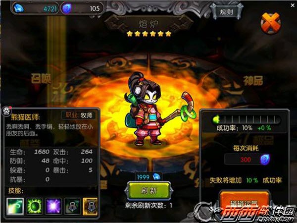 或者玩家可以通过熔炉系统的献祭功能获取,玩家通过献祭刷新可能会出现六星英雄,然后玩家可以通过消耗精魄来升级成功率来获取该英雄,所以大家需要平时多多积攒精魄。