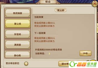 加入帮会可以每天拜关公获取体力,体力的多少与帮会的等级相关,帮派等级越高,聚义阁等级越高,可以领取的体力越多。