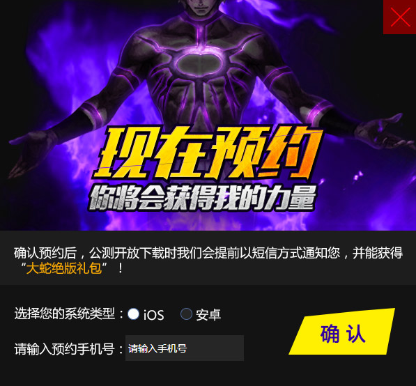 本礼包需要在官网进行预约,现在预约在公测到来的时候就会获得“大蛇绝版礼包”