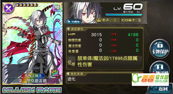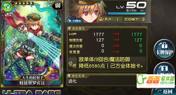 敌单体/3回合/魔法防御6580降低、己方全体抽卡+1