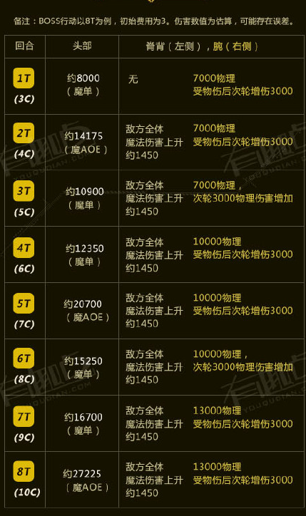 推荐团队第一时间集火脊背,务必在8C前击破,然后在脊背击破后,以尽量少的回合来击破爪子,注意尽量不要携带物理性的群体AOE,以防在击破脊背前误伤爪子。