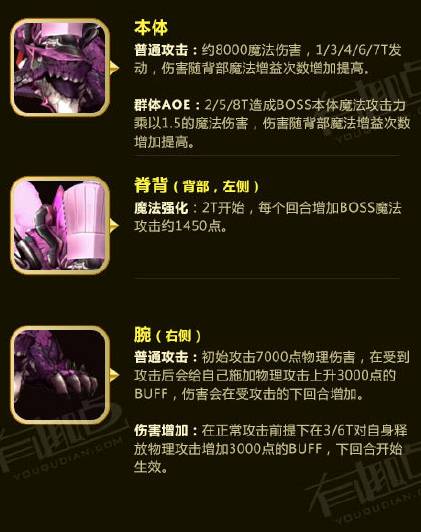 盗贼:在输出为主的前提下适当对本体实行魔法妨害,以免BOSS本体、爪子二重伤害直接秒杀