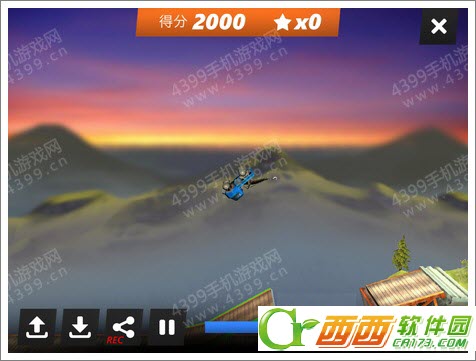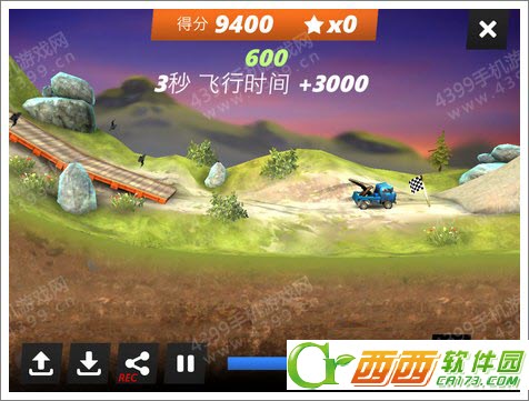 4.然后来到右边第2个障碍物,这里小伙伴们要全力加速,使卡车腾空(如果想获得高分,小伙伴们可以在这里做一下空中旋转的动作)然后注意控制卡车在高台平衡着陆。