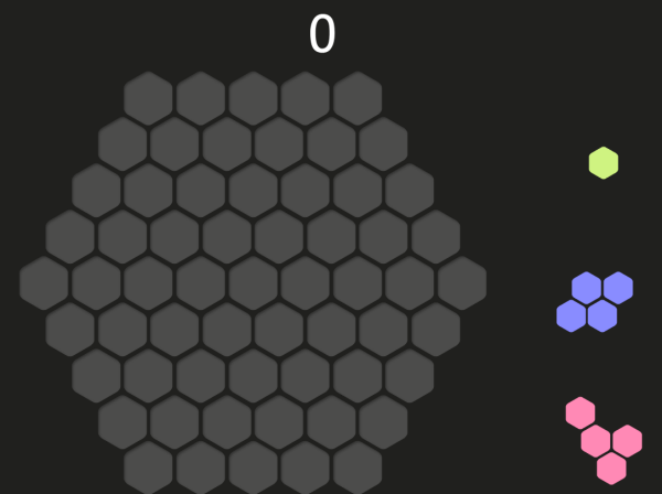 游戏的主界面是一个大六边形棋盘,也就是一个大大的蜂巢了。六边形的每一边又由5个小六边形组成,构成共有61格的棋盘空间。玩家拖动系统自动输出的各种六边形组合置于大六边形的空白处,使之排列成完整的一行或多行并且消除得分,而连续消除会有额外Combo加分。直到棋盘上再也无法摆下任意一个六边形组合的时候,游戏就会失败。