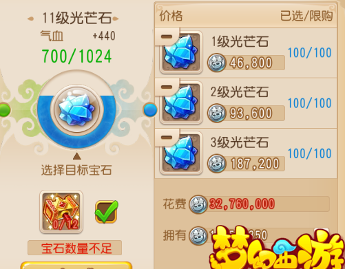 总计8256仙玉,也就是大概825块钱,需要注意的是这只是1个11级宝石,全身12个就是9900块。