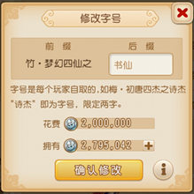 修改字号:玩家可以在结拜空间中花费2000,000银币进行字号修改。