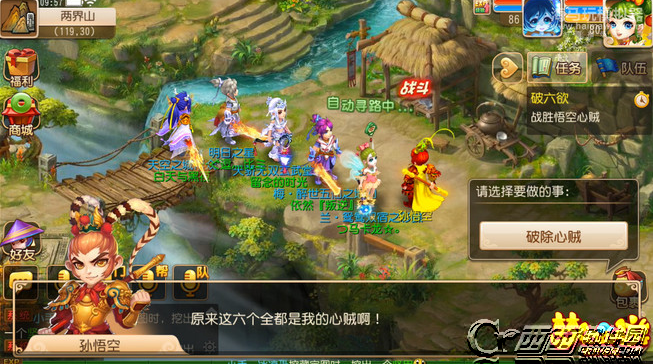 在看着唐僧给的提示把周边的强盗打死3个就可以了。但是如果杀鼻嗅爱、眼看喜、身本忧打完会给宝箱哦。(P.S宝箱是我哒)如果没有打这3个可能只会获得经验和银币奖励哦。