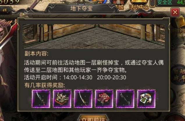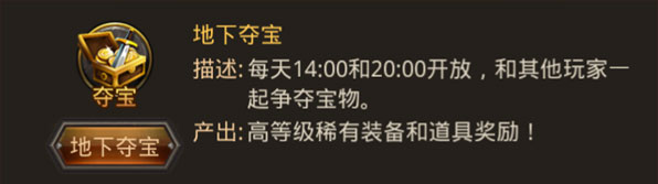 总的来说地下夺宝就是时间战,那个行会的人先到就占有先机,然后再靠人数守住战场,只有这样玩家们才能收获众多道具。