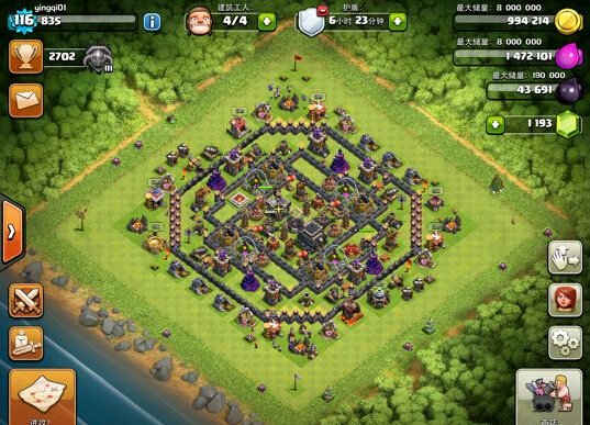 看到11本更新以及更重要的—大本内置消息,毅然停止做其他的阵型,开始创一个大本内置的九本阵 主要目的是护黑。