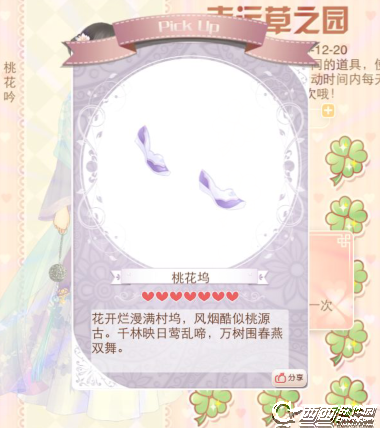 风暖仙源里,春和水国中。流莺应见落,舞蝶未知空。【桃花吟】套装将于12月16日1:00通过“幸运草之园”活动开放获取途径,届时大家可以使用幸运种子抽取藏在幸运草中的套装。
