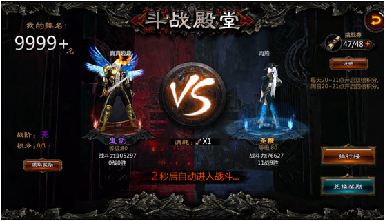 进入游戏后,玩家可以立刻体验满级顶级装备杀怪的快感,绚丽的美术特技和轻松的操作方式一定会让你很快爱上这款游戏,第一场战斗结束后就会开始新手流程,很快可以获得一套装备,特别值得注意的是签到就能获得VIP2级,将VIP礼包中赠送的武器和守护神一一带上,前期就很容易通关了。