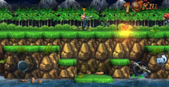 总的来说,这款《魂斗罗》手游针对移动端特性做了很多适配,平心而论还是比较贴合的,包括血量设定,近战攻击设定,退后射击设定等等。你会发现,虽然它和经典版本的差异较大,但确实更符合触屏虚拟摇杆的操作特性。