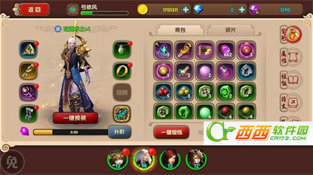装备的搭配技巧上,虽然前期并没有什么,但是一键换装和收集装备才是最为重要的,因为每个英雄都需要穿戴装备,所以经常装备就不够用,多收集总是好的。