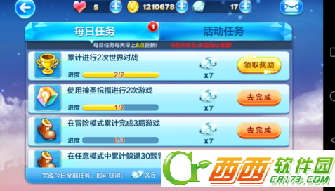 完成每日任务后,可以得到大量钻石,运气好的话应该在40+