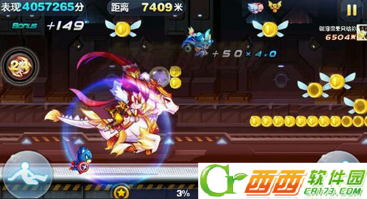 (酷跑模式)10倍bouns奖励得分;飞星得分加成3倍