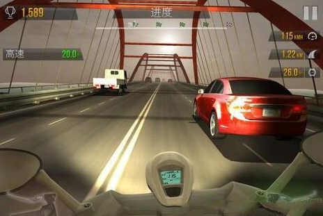 赛车类游戏对操作的要求都非常高,本作采用了重力感应转向,玩家们通过摇动设备来左右转向,手指点击摩托车右把手位置是加速,点击左把手位置是减速。