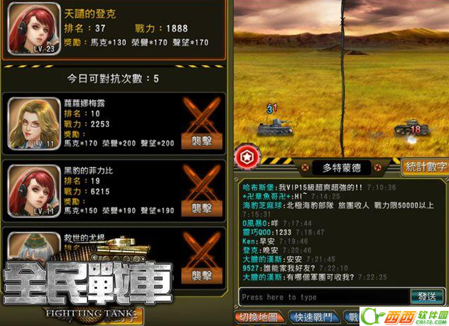 在《全民战车》中,玩家将扮演一名战车指挥官,率领麾下的精英部队在各大战役中歼灭敌军、保卫家园。在游戏的一开始,玩家们就将在重装战车、驱逐战车及远程自走炮三种不同特性的战车中进行选择,每种类型的战车都对应有独立的副官、专属的战斗特效,玩家可以根据自己的喜好来选择心仪的战车类型。