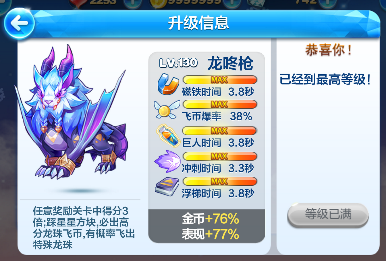 1、龙咚呛这个坐骑不能正确识别一些特殊的奖励关卡。比如超能少年的穿越奖励,暗夜宝贝的彩虹奖励。