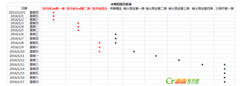 从1月12日00:00至1月12日23:59,开启暗火限定扭蛋第三弹活动!