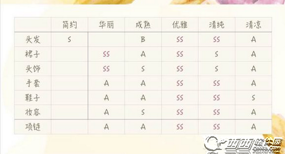 单纯从属性来看,略优于夕夜迢迢一丢丢,但是华丽成熟优雅清纯的关卡带中式古典TAG居多,所以实用性差了一点,加上权重偏优雅清纯,导致顶配关卡比较集中。
