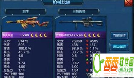 其实对于狙击枪的话,小编还是比较关注两个属性,那就是伤害和暴击,赤炎朱雀伤害595再加上45.7%的伤害,都不是巴雷特M82A1和刺羚之流比得上的,并且填弹时间也只有1.7秒,再加上81473的火力在PVE模式内也可以打出超高的伤害来!