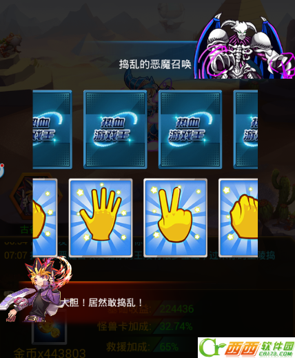 而且,在王陵探秘中,会有“拜访好友”帮其驱赶“捣乱怪兽”功能,需要玩家靠“猜拳”来一决胜负!每胜利一次,都会使王陵中的资源加成10%,失败也会有5%的加成,完成10次任务,可是一笔丰厚的额外资源哦!!