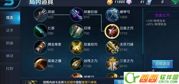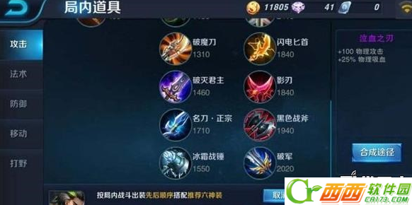 2中期在狂暴双刃基础上出闪电匕首,然后出把铁剑开始准备增加狄仁杰攻击为他输出做准备,准备出无尽刀锋增强暴击和攻击力度。