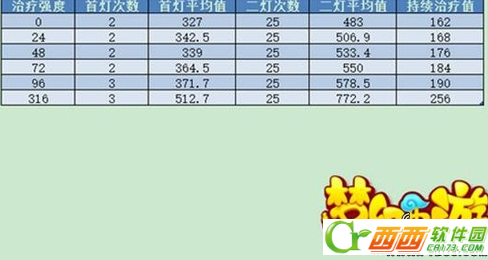 因为每个玩家的武器治疗强度,宝石镶嵌情况不同,这里根据总治疗强度做一个总结: