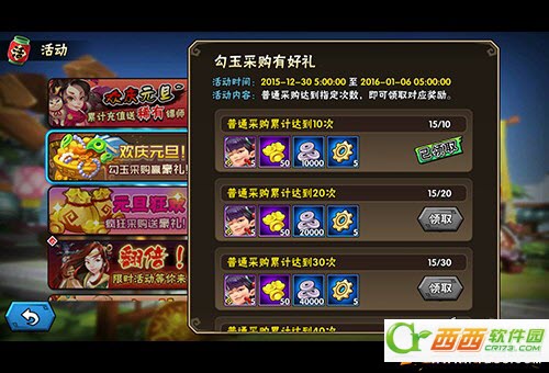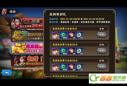 12月30日1月-6日的两款元旦采购送礼活动,可以说是莫掌门疯狂模式的正式开启。此期间,通过勾玉、元宝采购行为,可以获得大量的莫掌门武魂和勾玉、元宝、铜钱、齿轮等奖励。