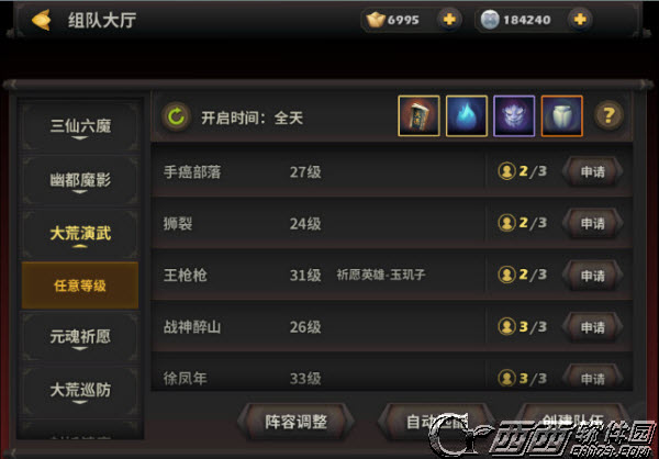 大荒演武共分8个环节,需要三名玩家组队开启。
