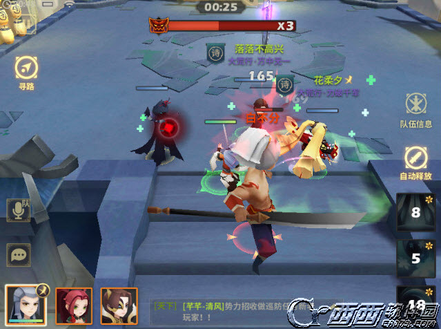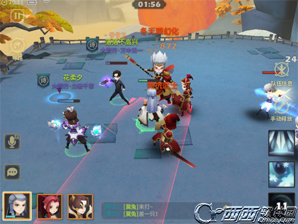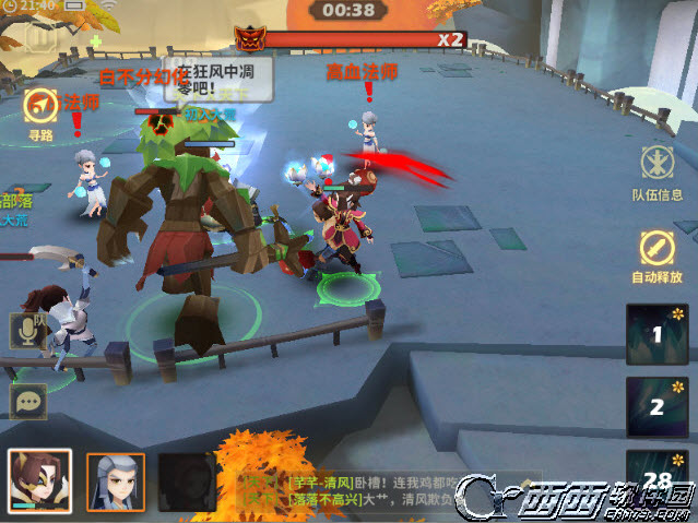 使用AOE技能英雄首发(例如玉玑子、莫非云这类),开局英雄往两侧跑(建议手指一直点手机屏幕右侧),如果不操作,第一个英雄会被小怪眩晕打断施法,直接被秒,导致输出不够。躲开后群技能清掉所有小怪,切换英雄,继续输出BOSS,注意打断或者躲开BOSS劈砍。