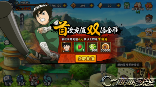 首次单笔充值6元及以上即可获得李洛克*1、3级红勾玉*1、声望*200、铜币*50000