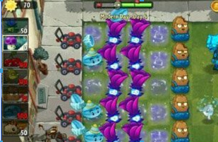 植物大战僵尸2现代世界第4天过关方法,本关节奏很快,不过刚开始出来的都是脆皮不用太慌,坚果+土豆的老套路炸死34路的僵尸,1路的几个快速脆皮堆小喷干掉。