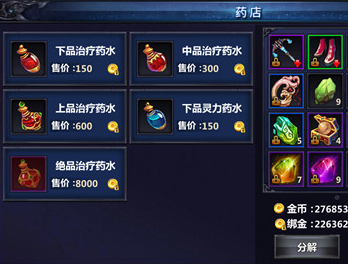 而绑金相当于各种常见多人在线手游之中的代卷,只能够用来在要点之中购买各种药水!(注意药水在打怪刷副本之中是非常重要的,药水不够的话挂机时很容易死掉)