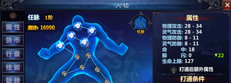 打通仙脉:冲脉能够提升角色的各项属性,针对所有角色优先选择的经脉也有所不同,由于冲脉也有成功率,建议先将各个经脉升完100%概率,在去冲击低概率。