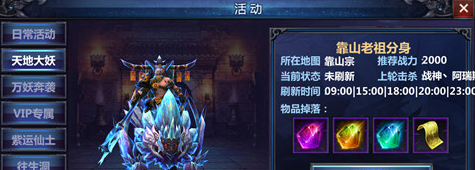 奖励丰厚的世界精英怪,在特定的时间刷新,注意每个大妖强度都不一样,玩家选择适合自己战力的大妖进行挑战!