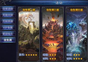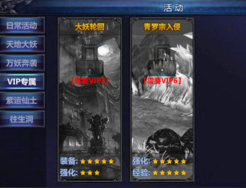 VIP3解锁特权副本:大妖轮回,主要掉落大量装备以及强速素材;