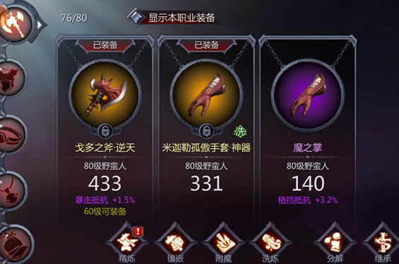 暗黑血统装备的培养从获取之后有:精炼、镶嵌、附魔、洗炼等四个途径来进行。