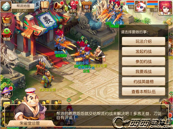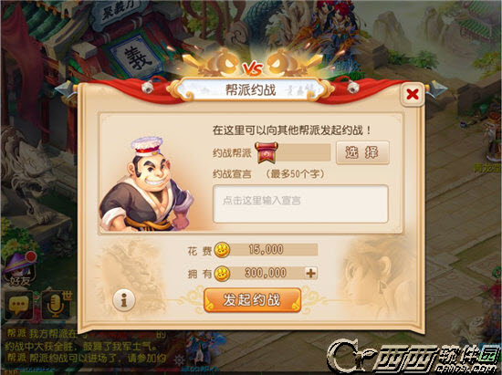 可以选择对方帮派并且下达约战战书,注意只有当对方帮派帮主在线时才可以发起约战。