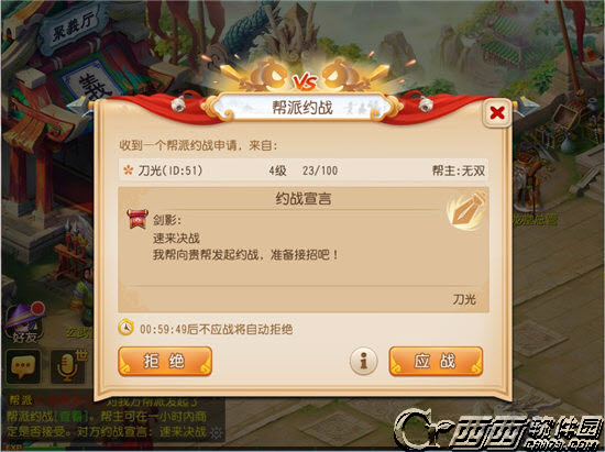 如果帮主收到了别人的战书,接受约战之后则努力组织好帮派成员应战吧!