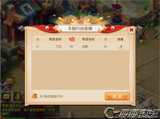 约战战斗期间,可以点击“我要观战”功能观看全服正在进行的帮派约战。