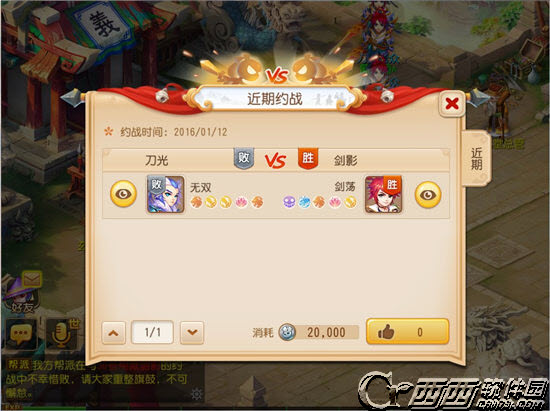 在约战英雄榜中,可以观看近期的约战胜负记录,可以观看战斗视频录像。并且可以为自己喜欢的约战点赞哦。