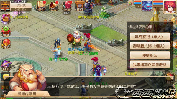 腊八会举办祭祀祖先和神灵的祭祀仪式,祈求丰收和吉祥。同时许多人家自此拉开春节的序慕。为来年祈福。玩家依次对山神,河神,土地神进行祭祀可以获得“祈福石”,使用它为来年送上祝福还能获得奖励。