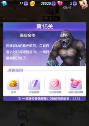 1、能量达到288才能开始闯关,这也是通关最低要求(图中写明一星通关最低能量288,但由于本关是boss战关卡,实际上只要达到288能量就能获得3星)