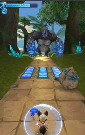 1、躲避滚石:暴戾金刚放滚石的时候会甩手臂,看清楚手臂方向可以提前预测滚石哦~能大大提升躲避几率。躲避滚石后不要着急回到中间跑道,boss有时会在同一侧连续放出小滚石和大滚石,回到中间跑道再换道时很可能撞上滚石。