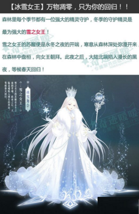 雪之女王的苏醒便是永冬之夜的开端,寒意从森林深处弥漫开来,在森林中盘桓,向女王朝拜。此夜之后,大陆北端陷入漫长的黑夜,等候春天回归!