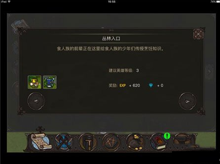 boss有点难度,这一关boss除了伤害高之外,还有一个从地下钻刺的技能。需要注意的是,战士顶怪的同时,其他英雄拉开一定距离,不然会被boss的技能打到。